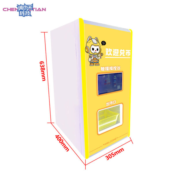 coin changer machine with touchscreen control panel and LED lighting for arcade counter token exchange