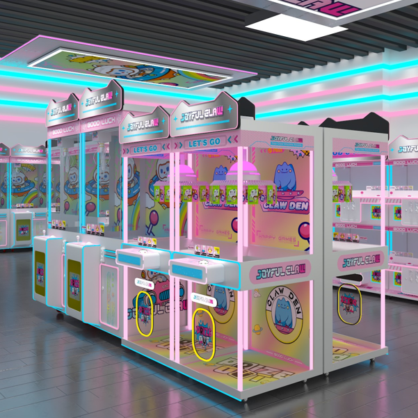 Stand out in the market with fully customized claw machine decals, LED lighting effects, and functional prize display fixtures. We offer professional sticker design services that reflect your store theme, IP characters, or seasonal campaigns—helping you build a strong visual identity that attracts attention and increases player retention.